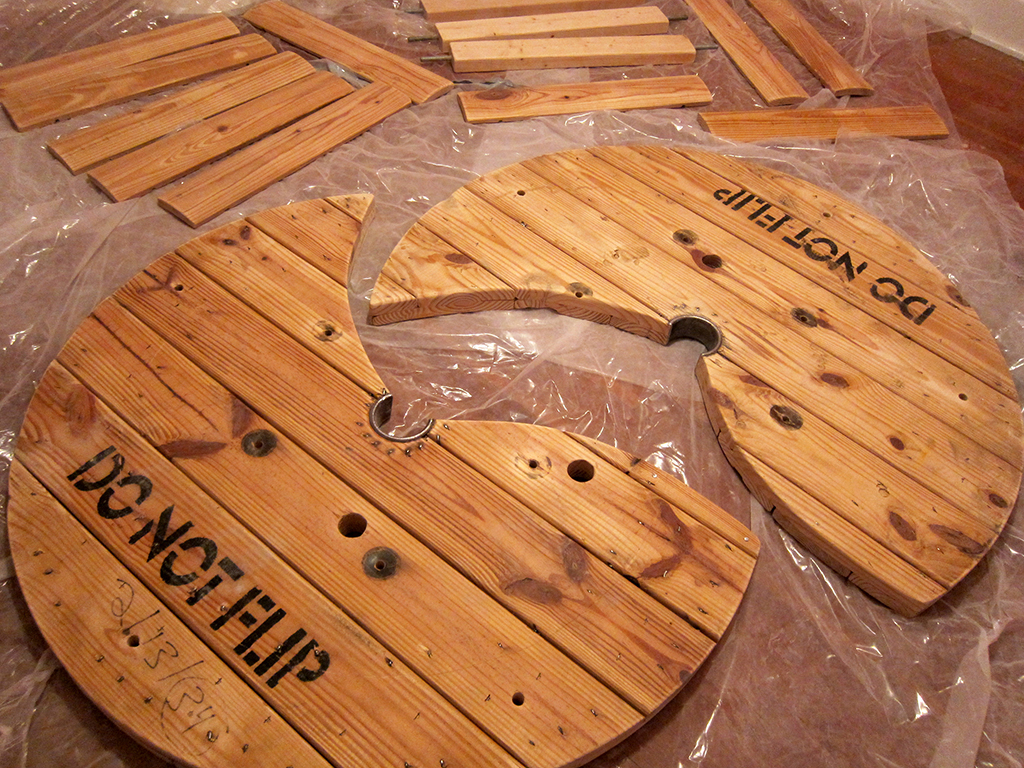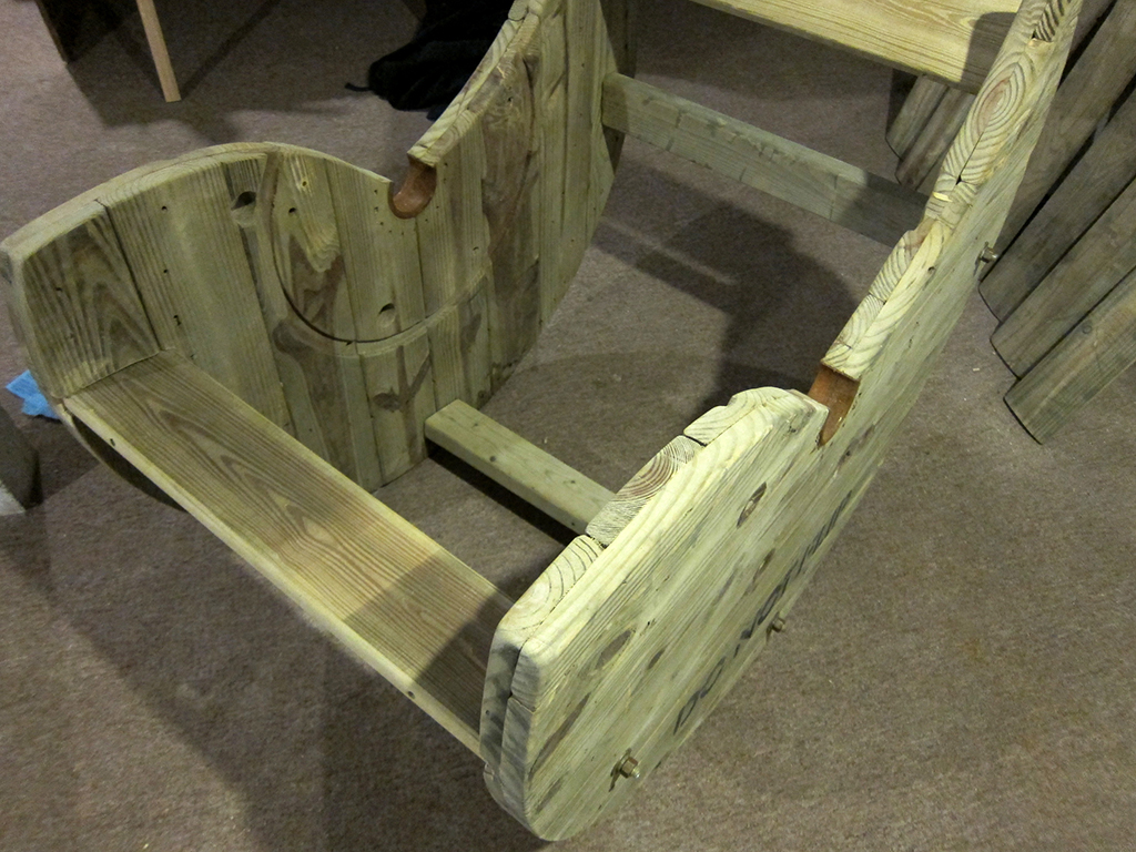Along came a guy with ambition.Upcycling stuff was his mission.He shaped that old spoolWith some woodworking tools.Now a rocker’s its new disposition.